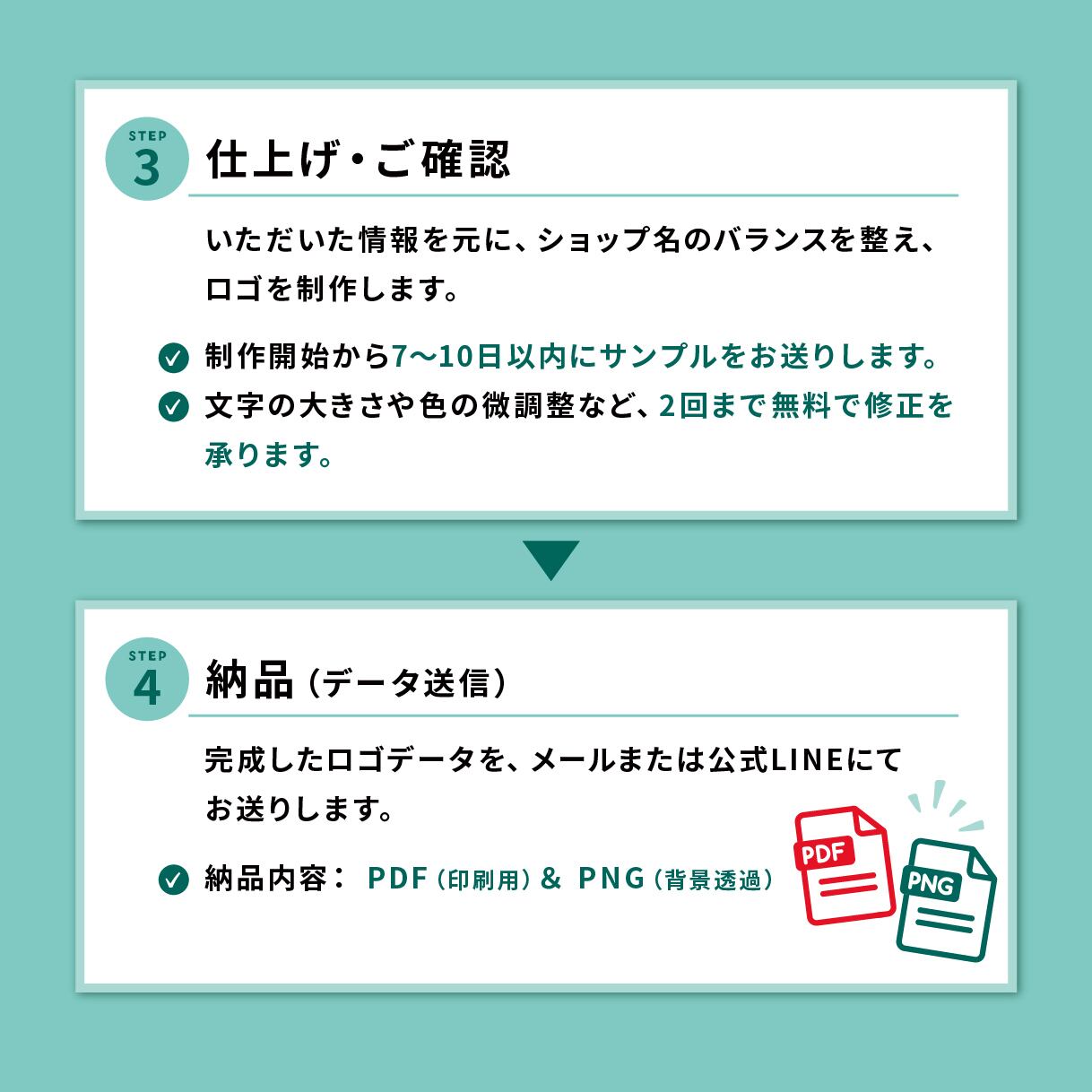 お好きなデザインを選び、店名を伝えるだけ。ロゴとして完成した状態で納品いたします。